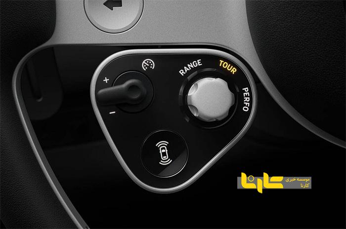 اگرچه طراحان این خودرو بارها از آیفون به عنوان الهام بخشی برای نصب نمایشگرهای لمسی یاد میکنند، آیو گفته است که هرگز صرفا از کنترلهای لمسی برای یک خودرو استفاده نخواهد کرد، زیرا برای استفاده از آنها باید نگاهتان را از جاده بگیرید.